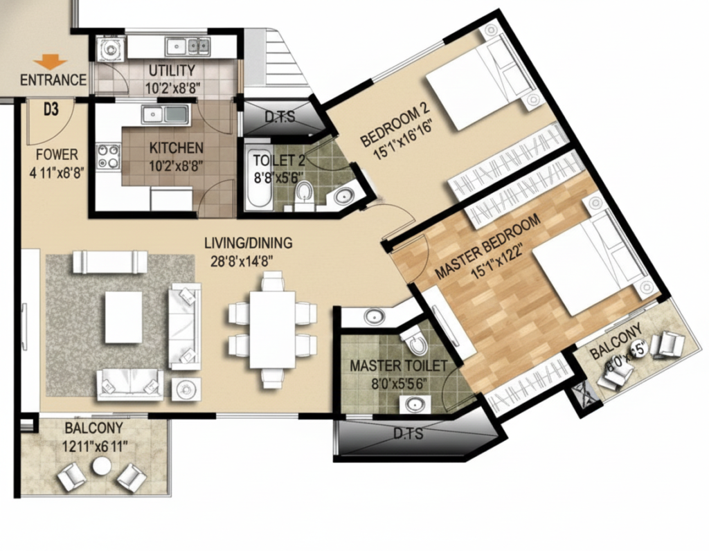 2 BHK | 1107 – 1555 Sq.Ft